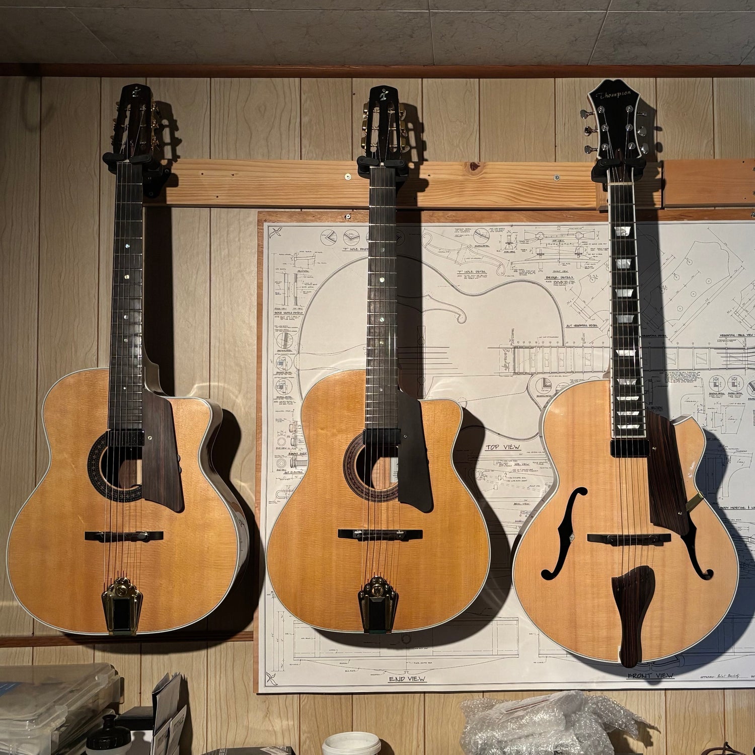 Faye's dad is a talented luthier from Newfoundland who makes archtop and gypsy jazz style guitars, mandolins and bouzoukis. Listen to Laurie play his song Spindrift on one of his guitars.